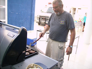 Today we went out to Progreso to the Fundraiser for the Red Cross out there. They were raising money to equip the new ambulance. There were lots of Americans, Canadians and Mexicans out there. They were serving 'Gourmet' Hamburgers (made with real beef, no fillers!) :) and homemade potato salad. Some friends of ours were making the food and helping with the Fundraiser so we went to help out too.